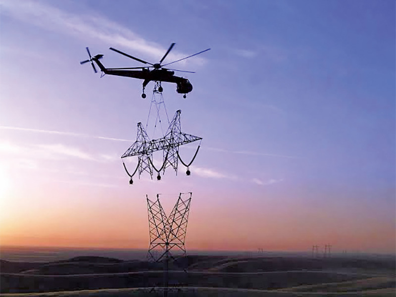 送電線の張替工事、撤去工事、新設工事、鉄塔の組立・解体・部材交換工事、保守点検作業に対応しています。